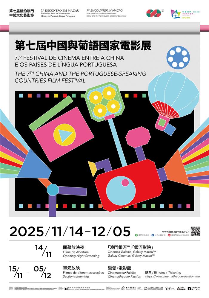 第七屆“相約澳門——中葡文化藝術節”於10月至12月期間舉行,其中,由澳門特別行政區政府社會文化司指導,文化局主辦,銀河娛樂集團擔任開幕合作單位的“中國與葡語國家電影展”,將於11月14日至12月5日舉行。本屆影展以“跨‧界”為概念,特別展映多部中葡日韓作品,透過銀幕呈現跨越地域的人文故事,期間亦設社區放映、映後座談及手作坊等延伸活動。