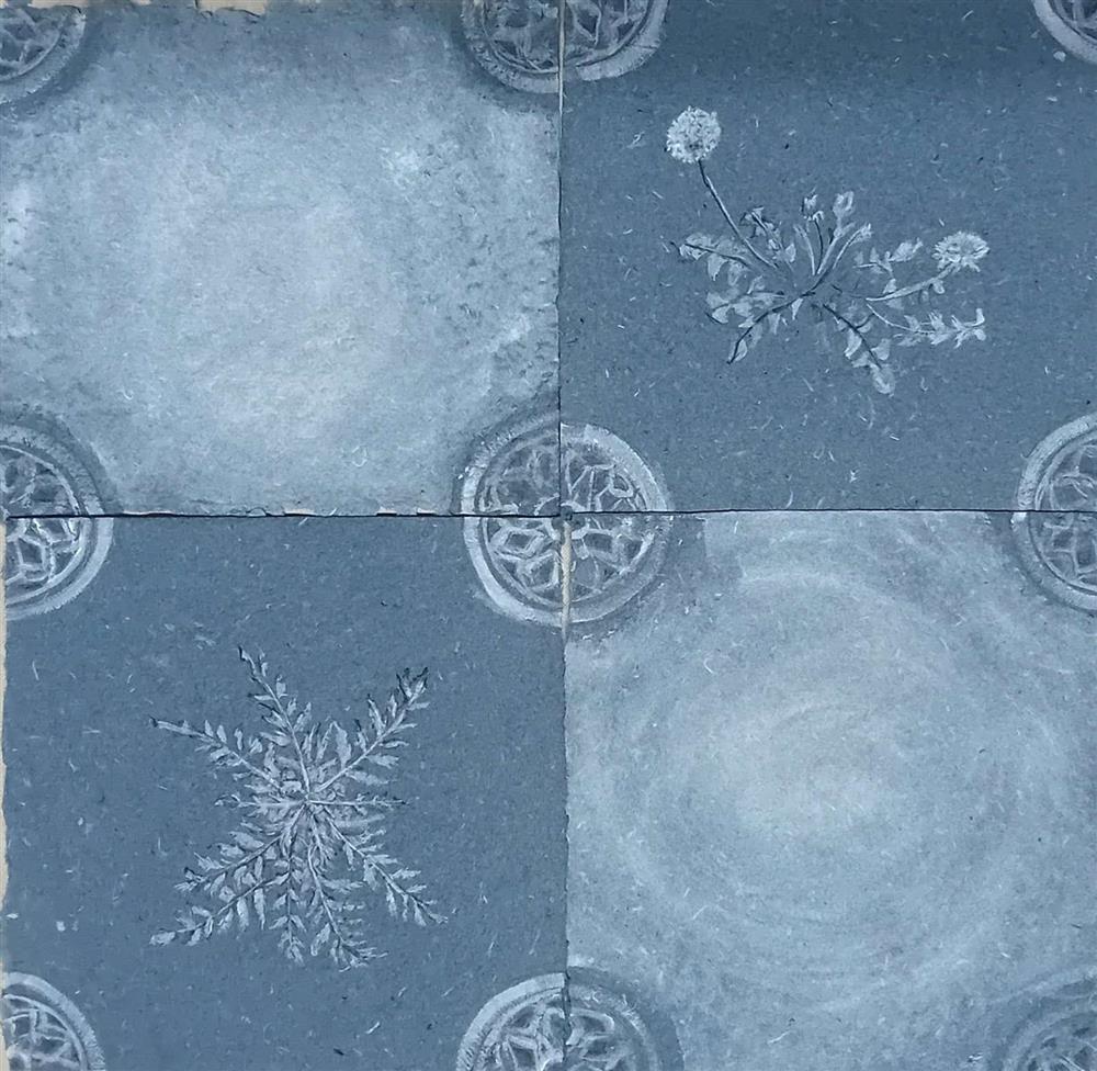 "In Macau, I explored Portuguese motif tiles on municipal structures and 20th century azulejos depicting the South China Sea," Elizabeth says. "While translating these designs into denim paper made from blue jeans, I studied the individual brushstrokes to grasp the decisions of their creators.